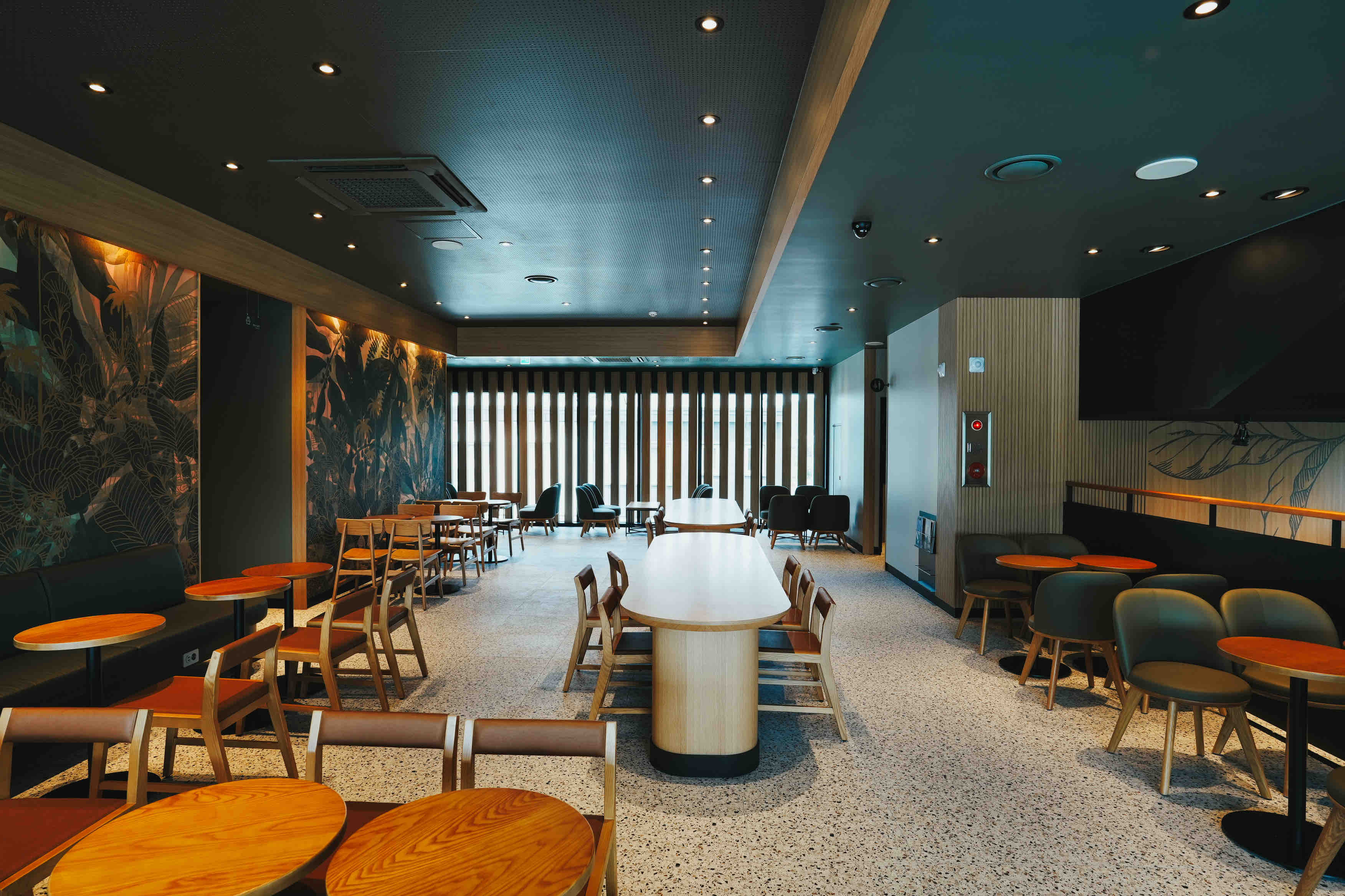 - 넓은 실내 공간과 루프탑 또는 테라스가 조화를 이뤄 전경이 열린 개방감 있는 분위기를 제공합니다.