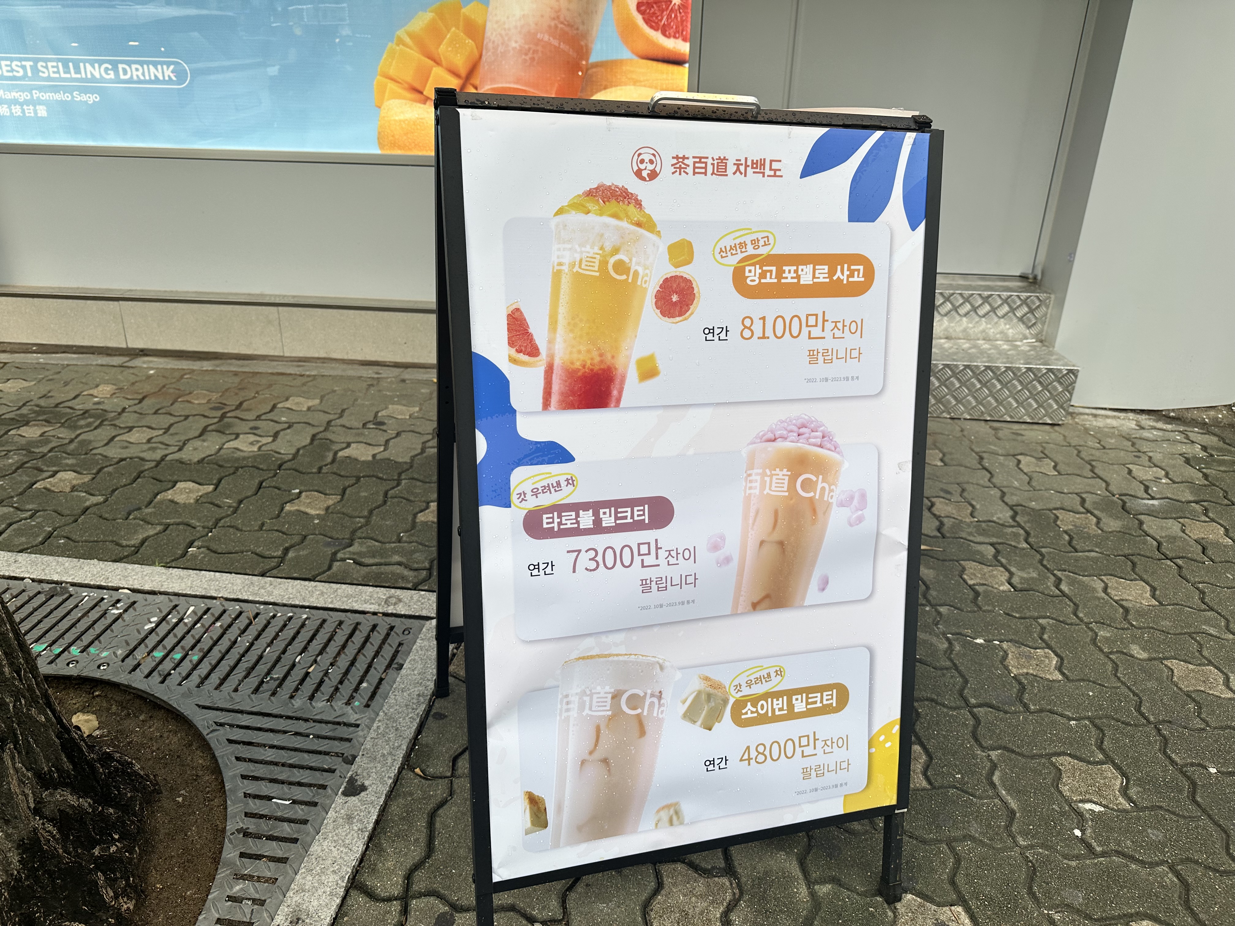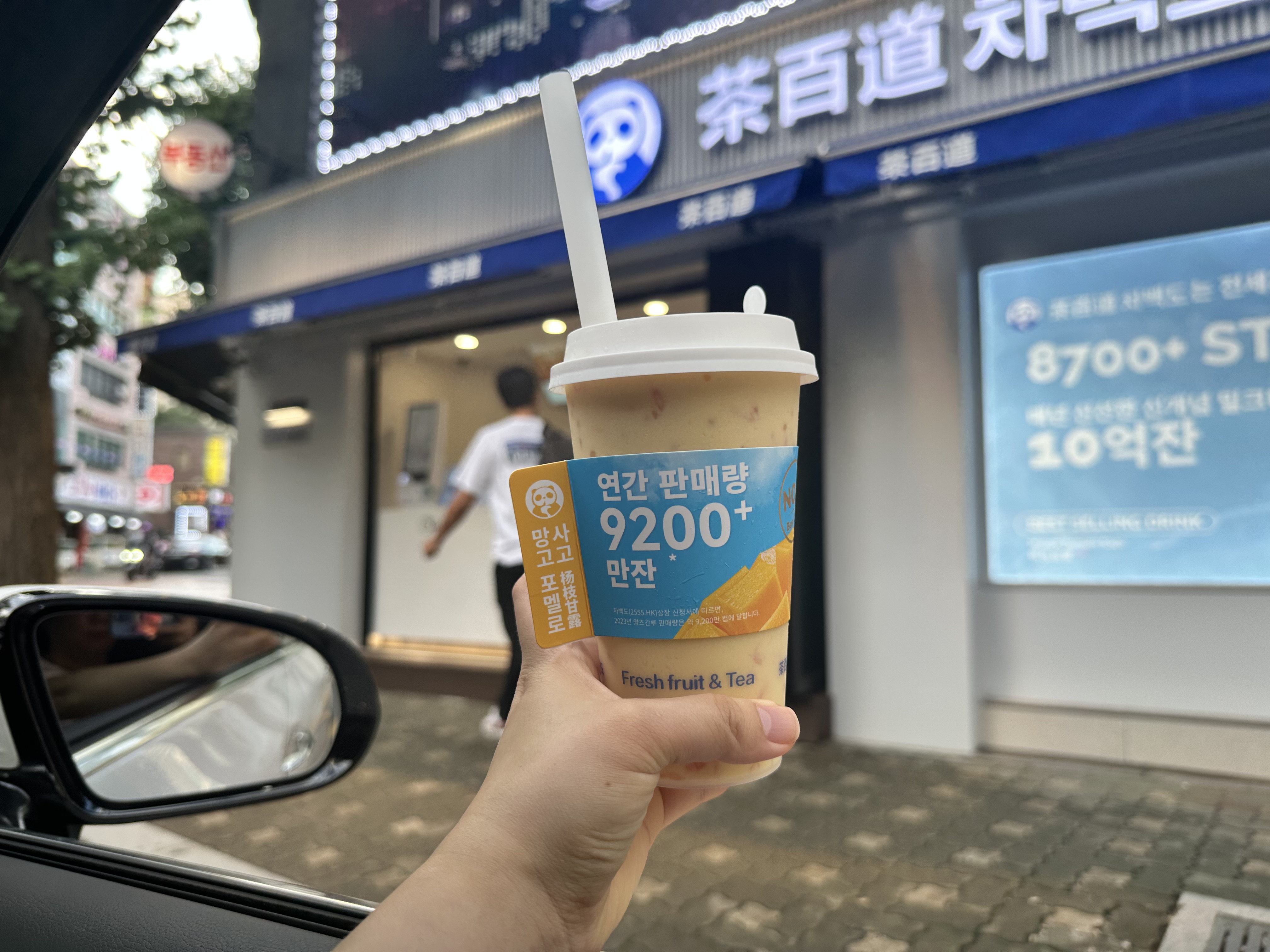 연간 판매량 9200만잔인 차백도가 서울에 상륙해서 한번 먹어보았습니다. 이번에 제가 주문한 메뉴는 망고 포멜로 사고였어요.