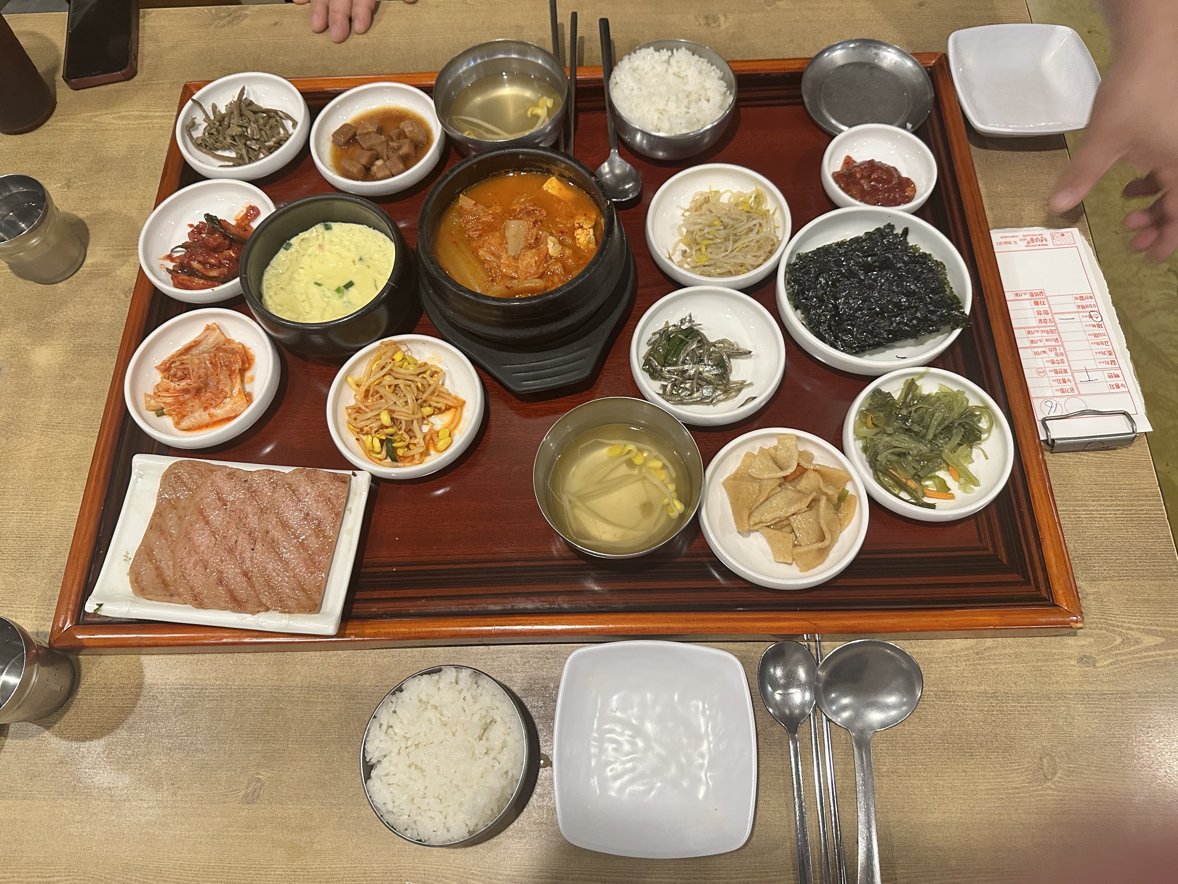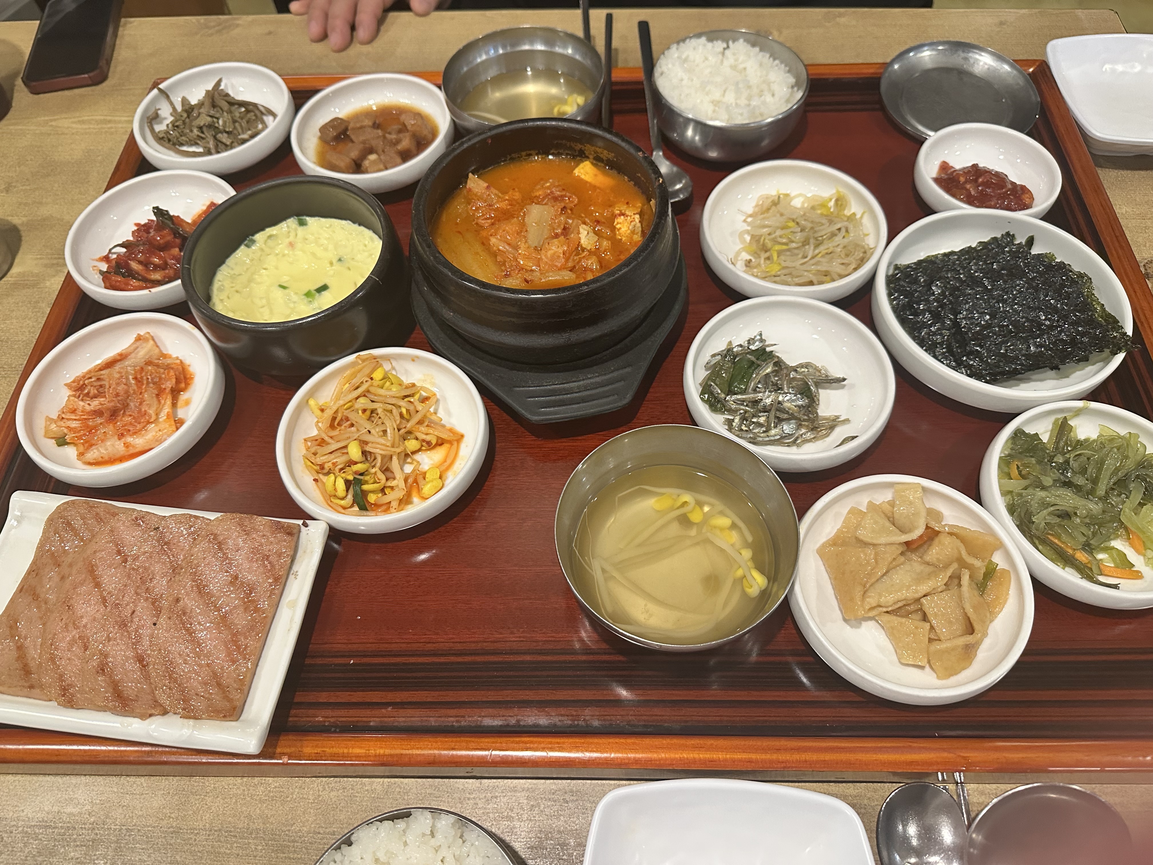 따끈한 밥과 정갈한 반찬, 그리고 특별한 스팸구이와 누룽지까지 더해져 집밥 같은 한 끼를 즐길 수 있는 곳이에요.