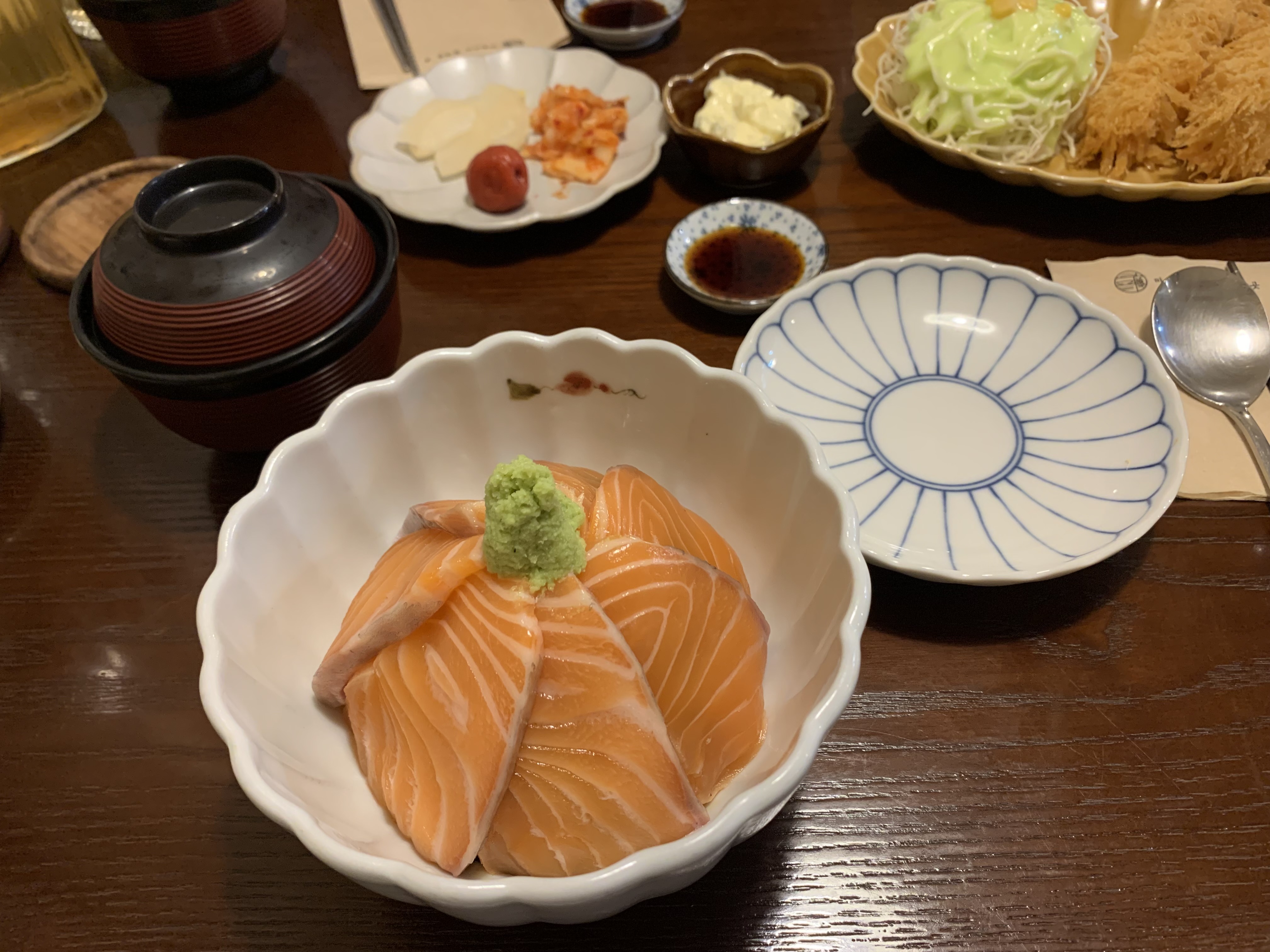 사케동은 연어가 정말 두툼하게 올라가 있고 밥 양도 많아서 든든해요.