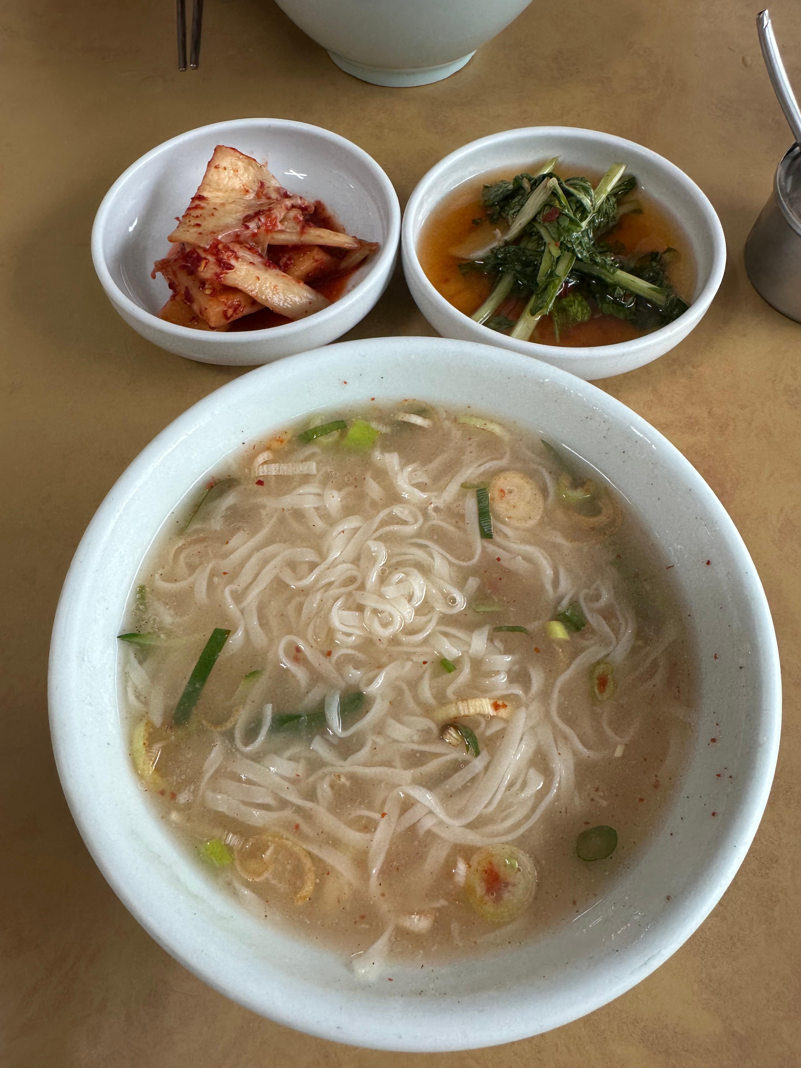 면발은 얇고 넓적하면서도 쫄깃했고, 국물은 사골 같은 깊은 맛이었지만