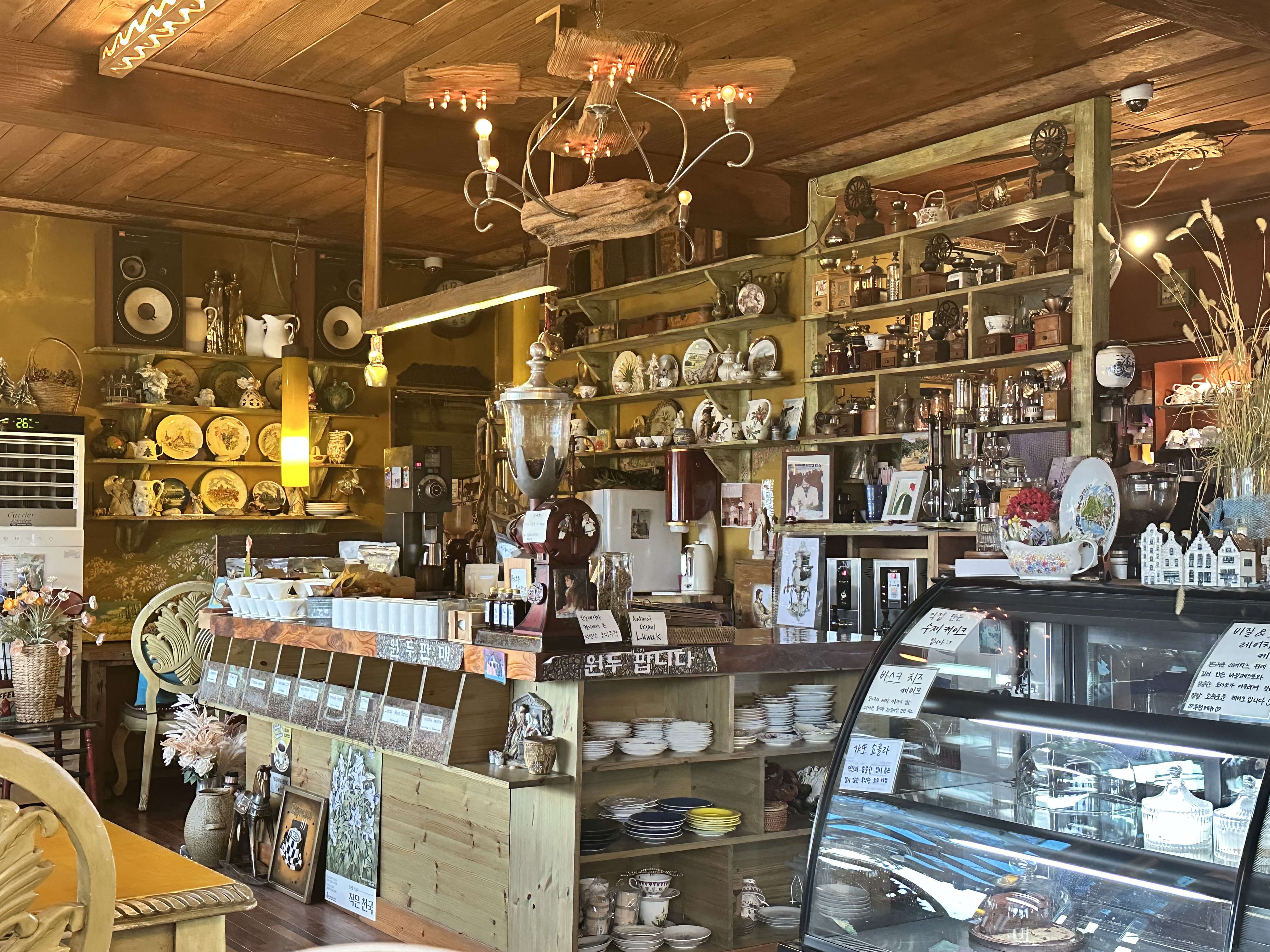 우드 톤과 앤티크 소품이 어우러진 클래식 무드라 마음이 차분해집니다.