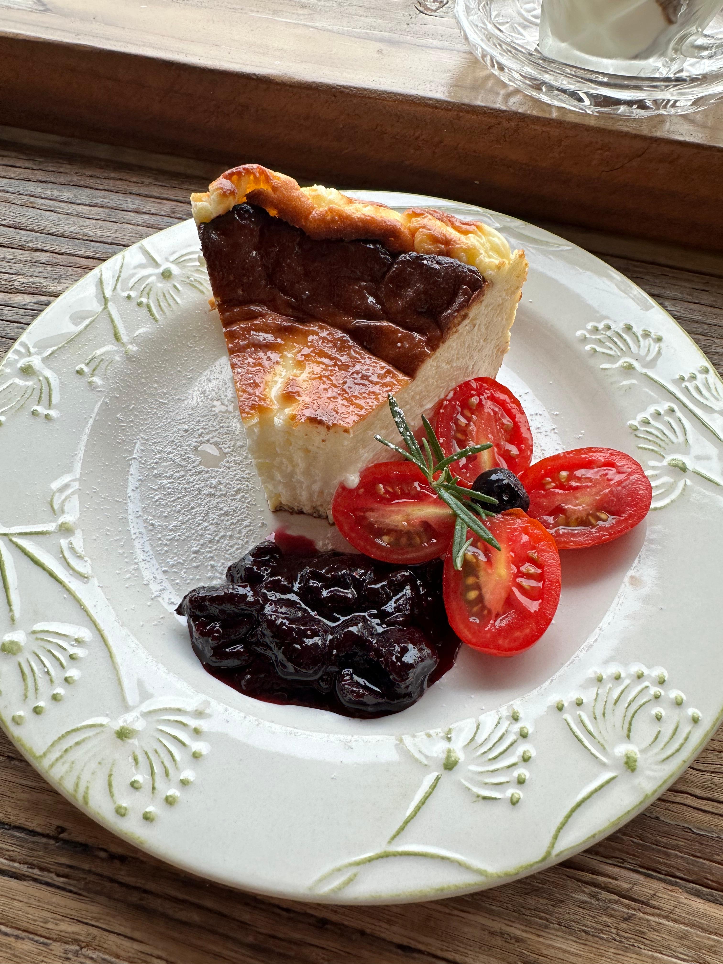 바스크 치즈케이크는 겉은 은은히 구워 향이 좋고 속은 크리미! 커피랑 완전 찰떡궁합니다.