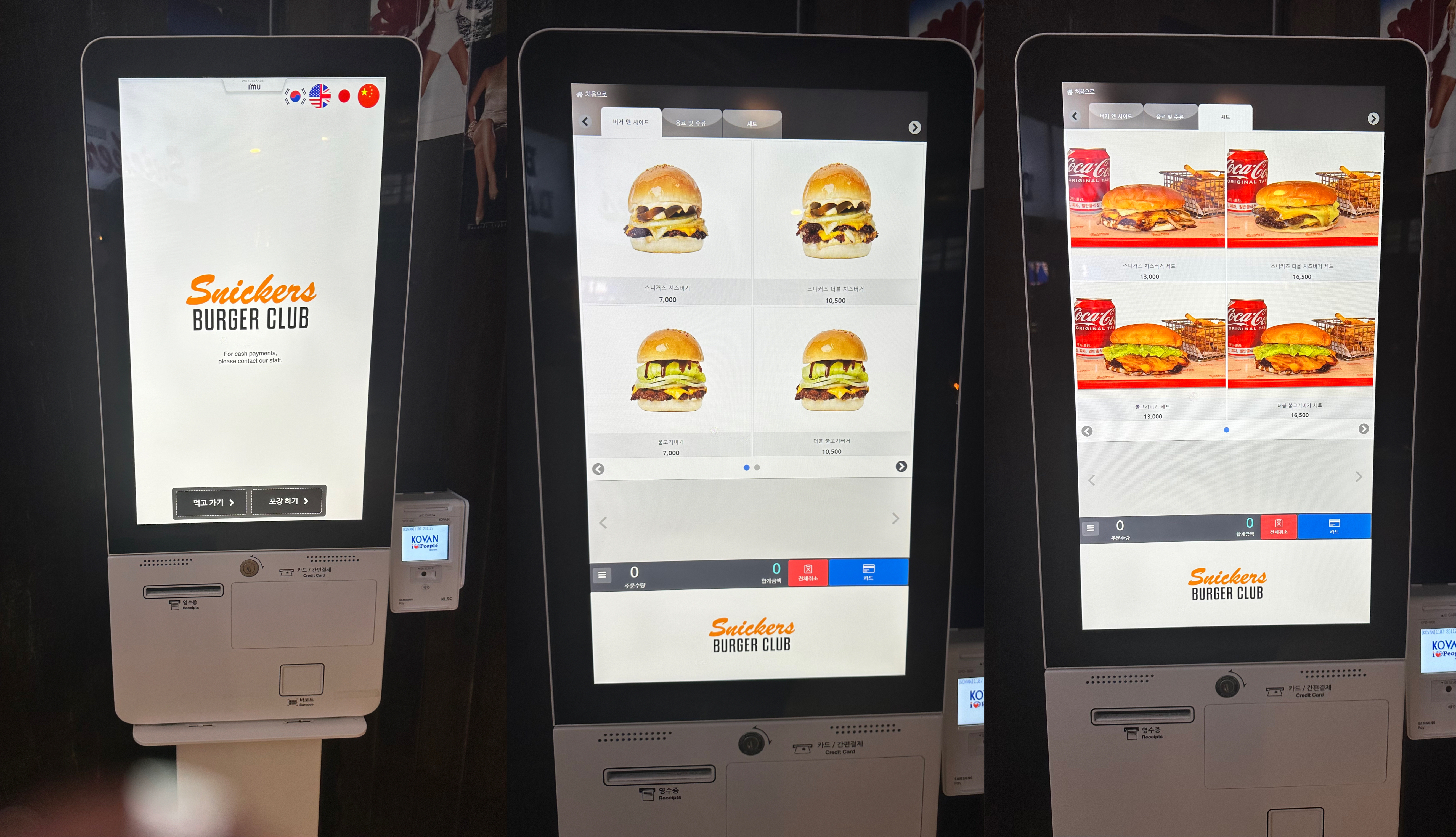 제가 주문한 건 SnickersCheeseBurger 세트와 Bulgogi Burger 세트였어요.