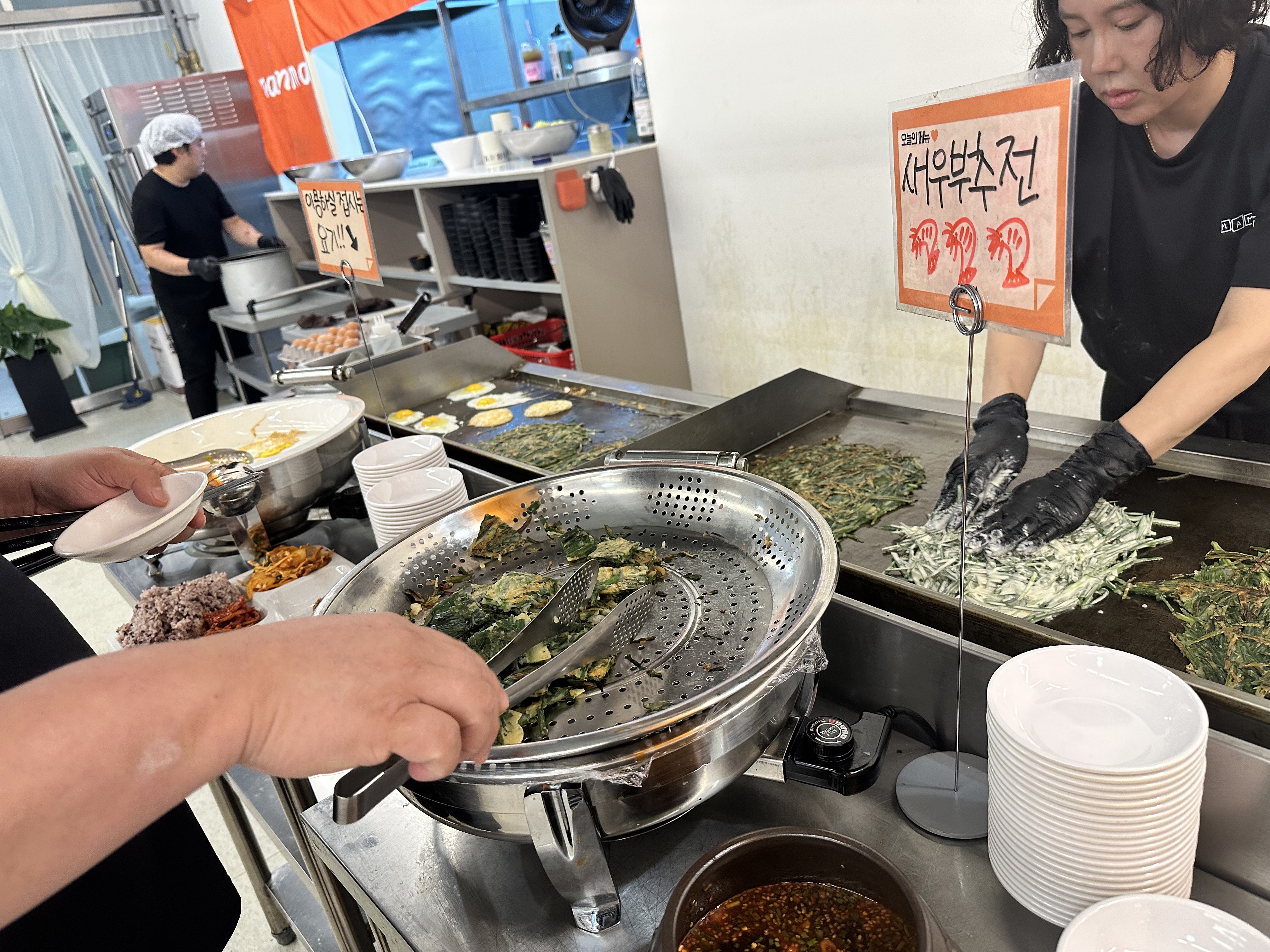 특히 불고기와 제육볶음이 인기 메뉴라 금방 리필되는 걸 볼 수 있었고, 볼카츠와 새우 부추전도 인기가 많았어요.