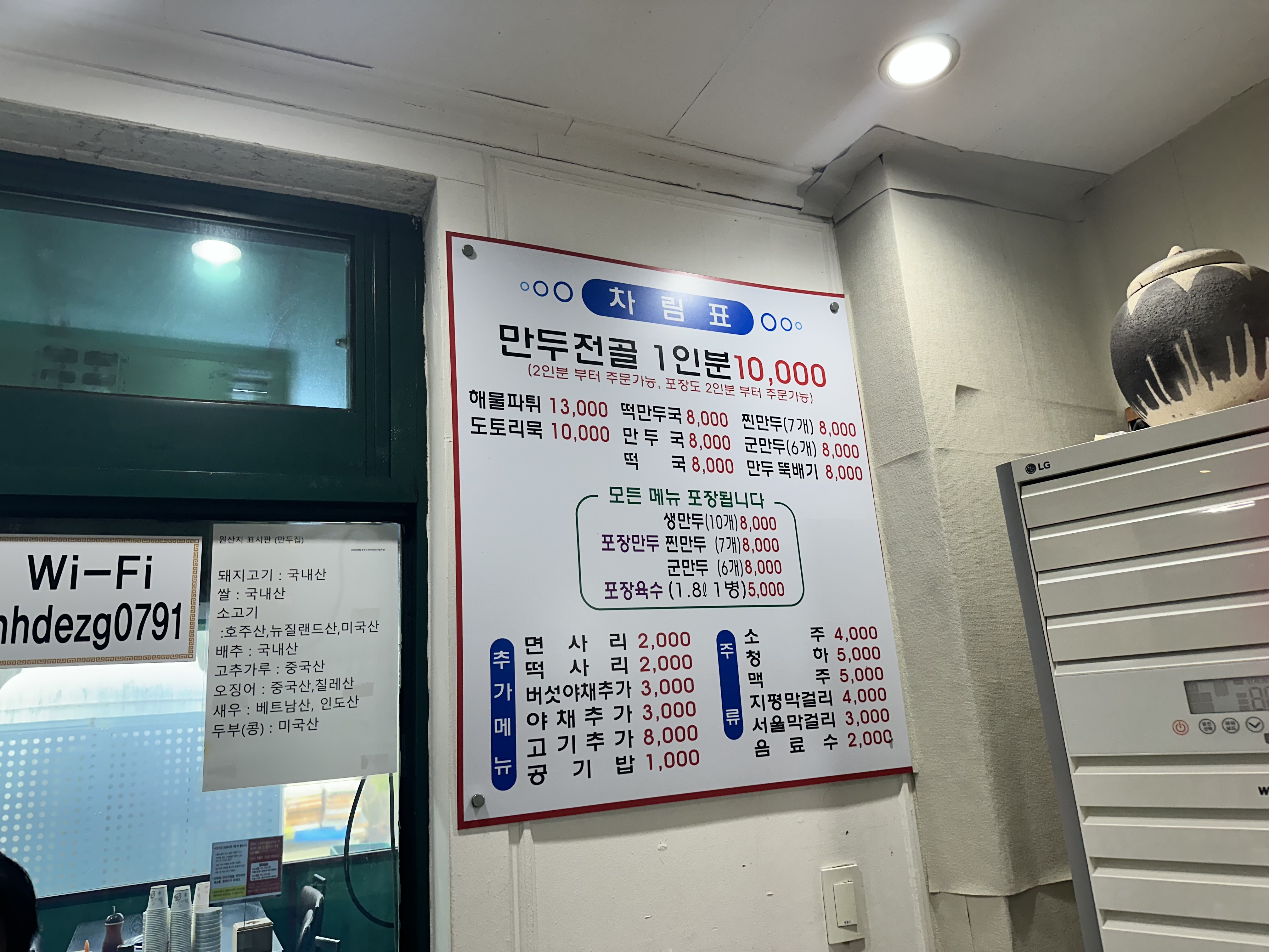 - 포장: 가능 (전골, 만두류 모두 가능)