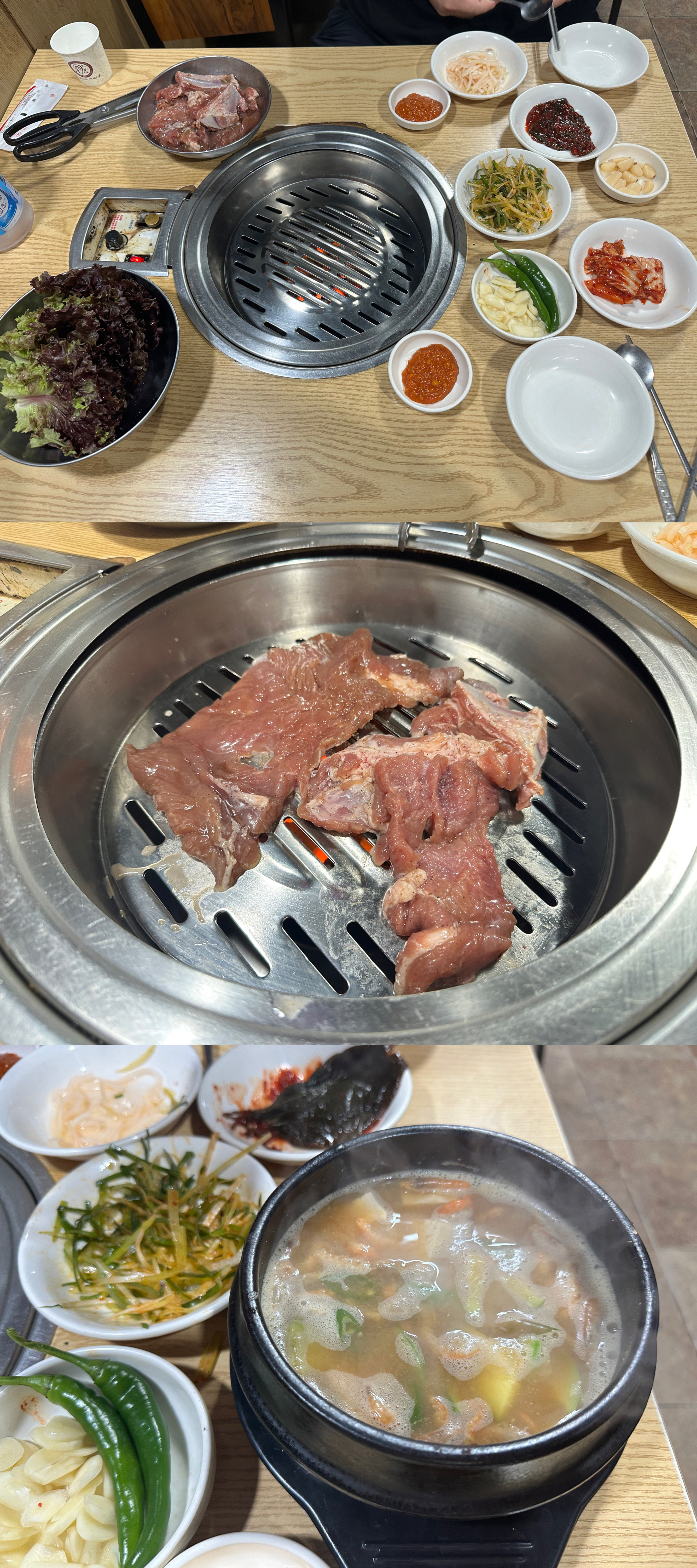 기름장에 찍어 먹어도 맛있고, 무채+파채+상추 쌈 조합은 역시 국룰입니다. 된장찌개도 구수하고 진해서 고기와 찰떡궁합!