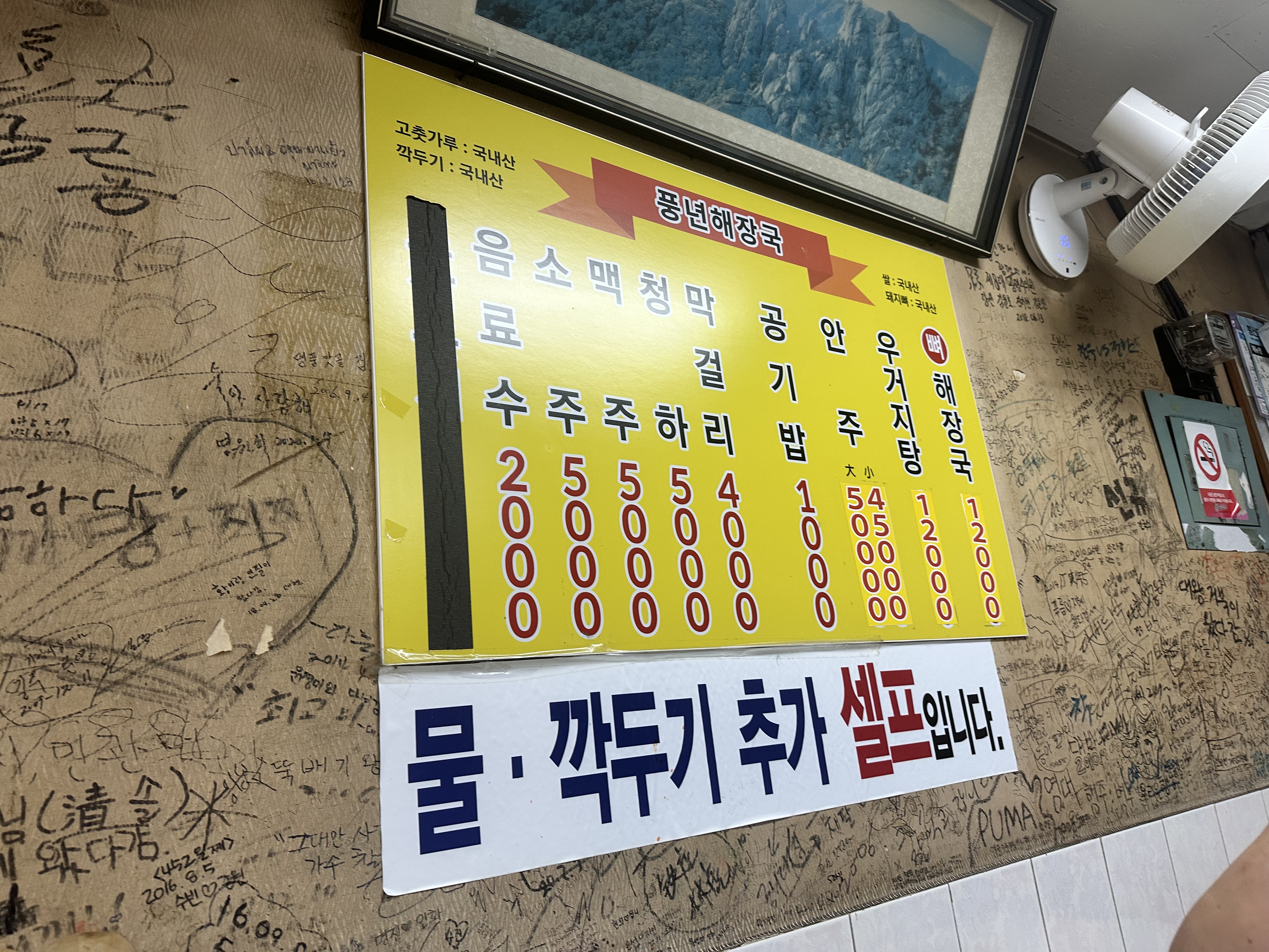 - 청하/소주: 5,000원 / 음료수: 2,000원