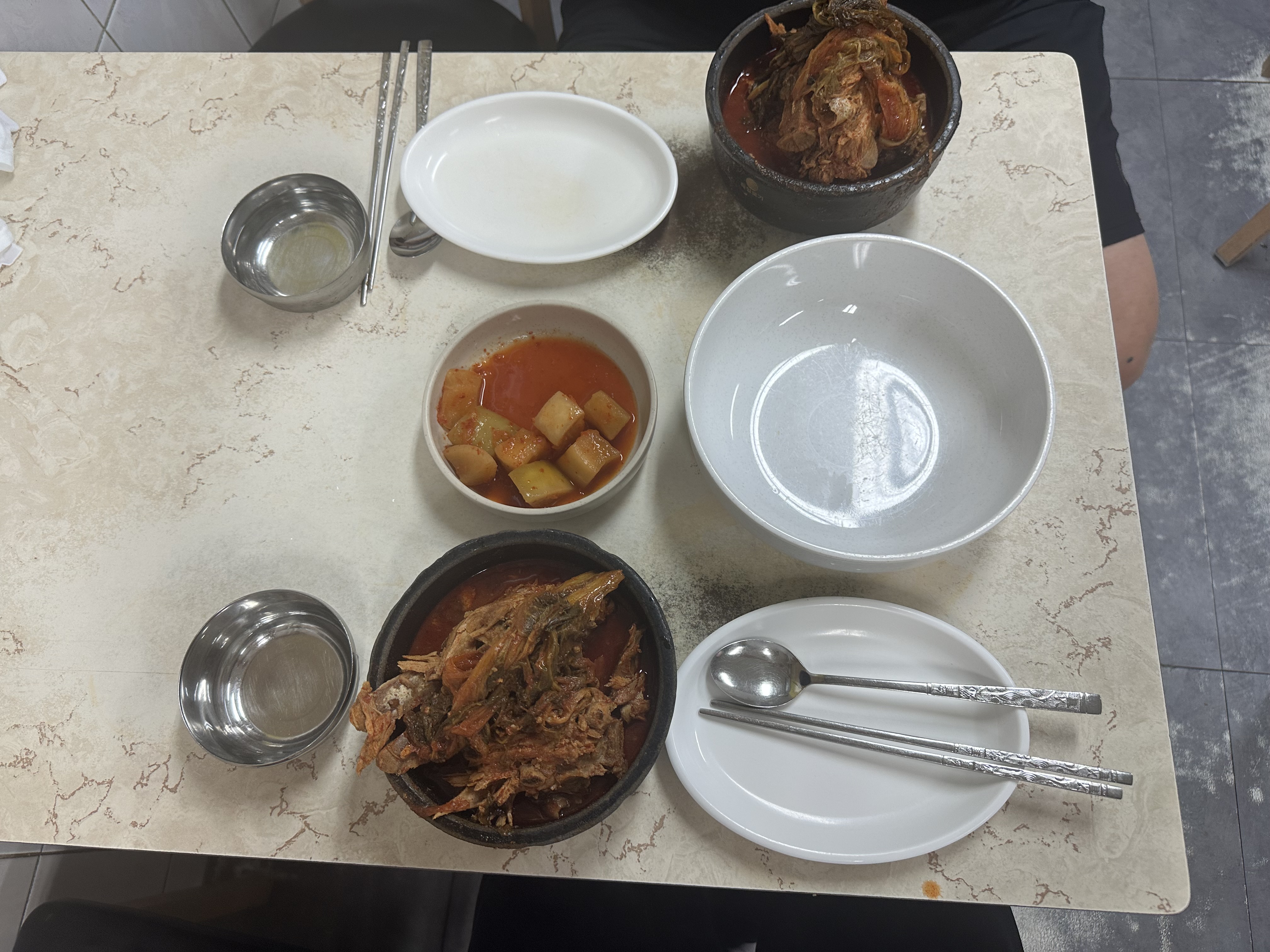 국물은 자극적이고 간이 있는 편. 제 입맛에는 살짝 짜게 느껴졌지만, 해장하러 오시는 분들에겐 오히려 딱 맞을 수도 있겠다는 생각이 들었어요. 같이 나오는 깍두기는 아주 맛있어서 밥도둑이었고, 국물과 곁들이니 해장국의 매력이 확 살아났습니다.