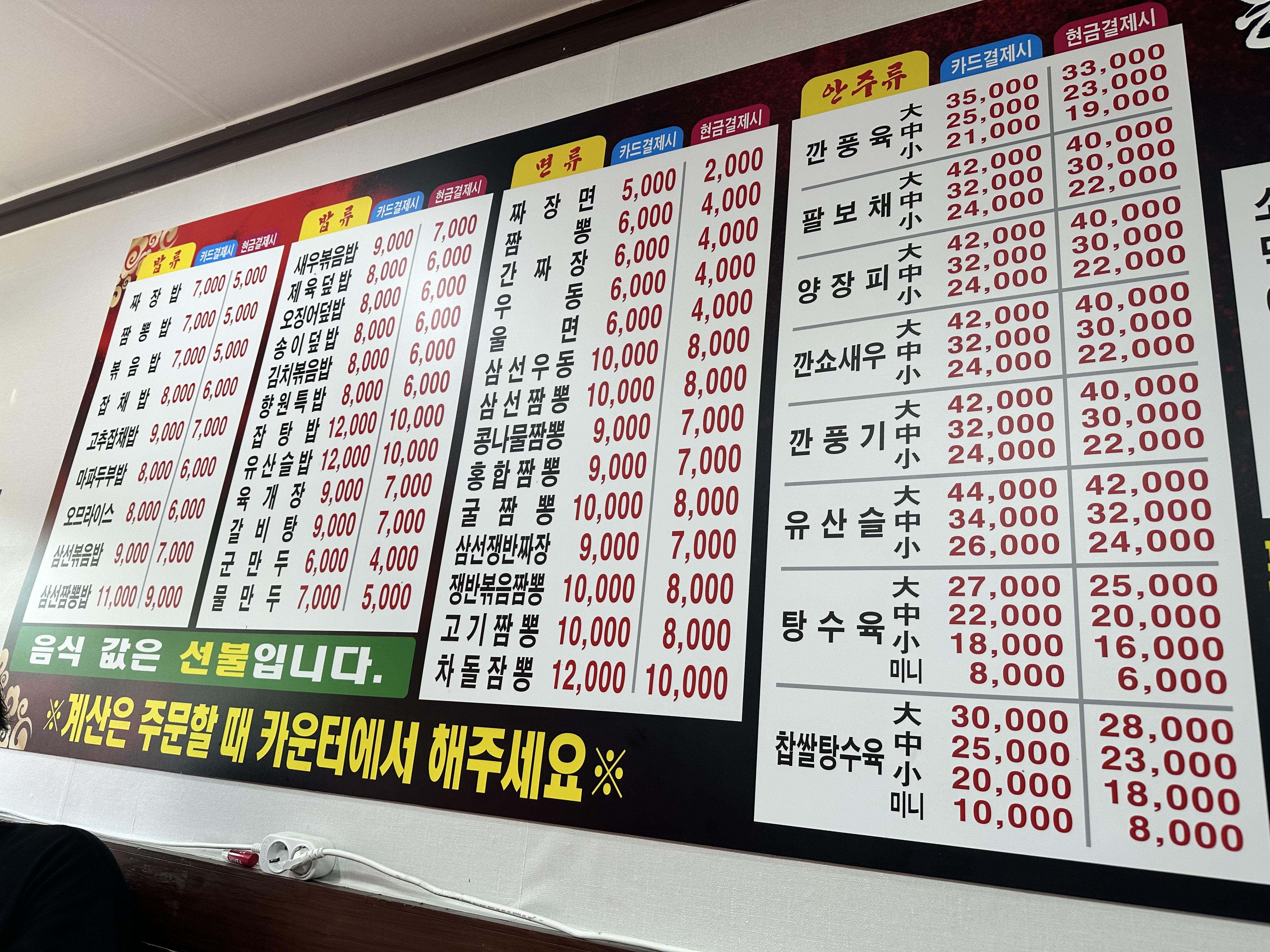 - 짜장면: 2,000원 (현금가)