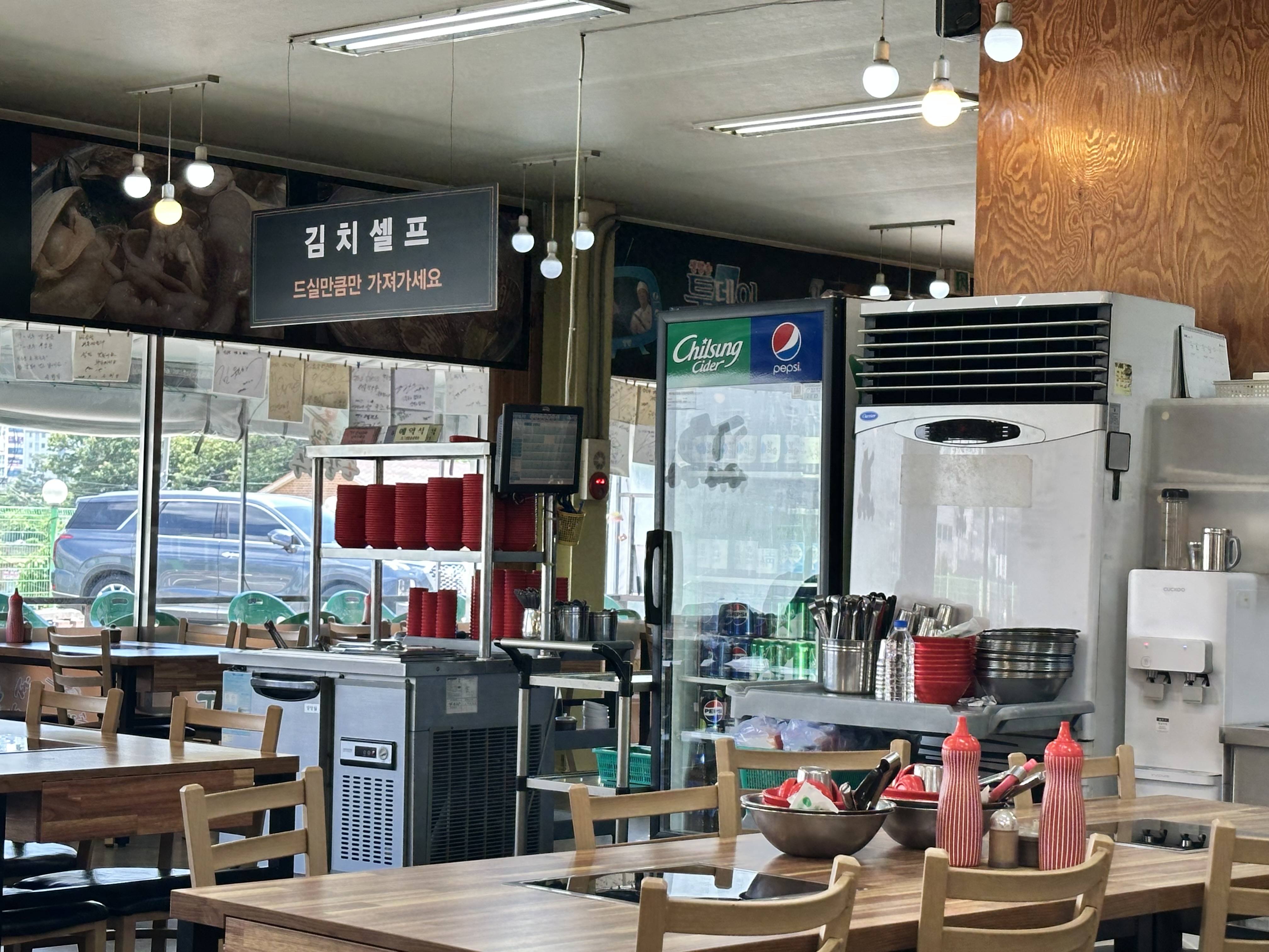반찬은 셀프 코너에서 자유롭게 가져다 먹을 수 있으며, 김치의 맛도 괜찮았어요.