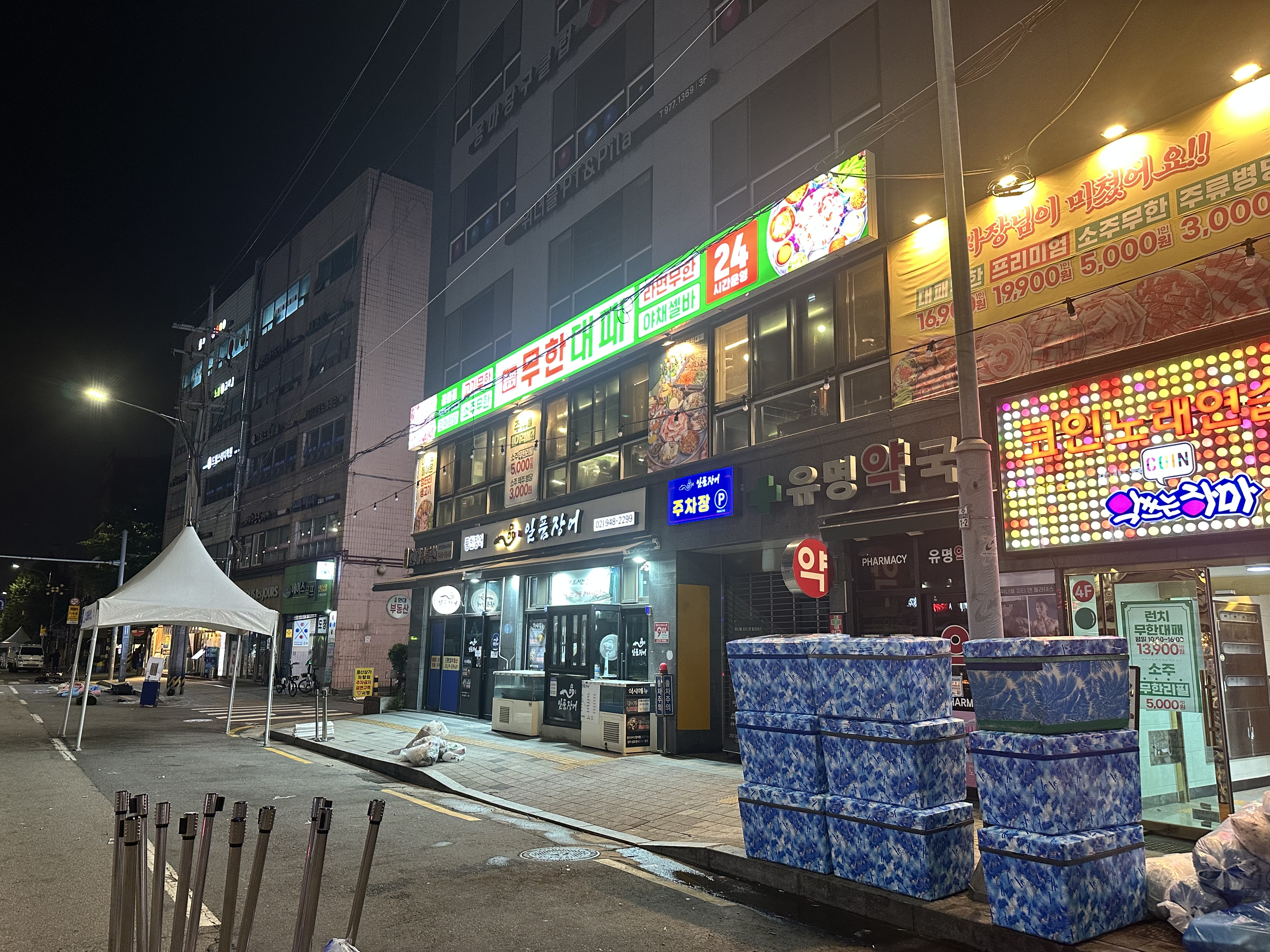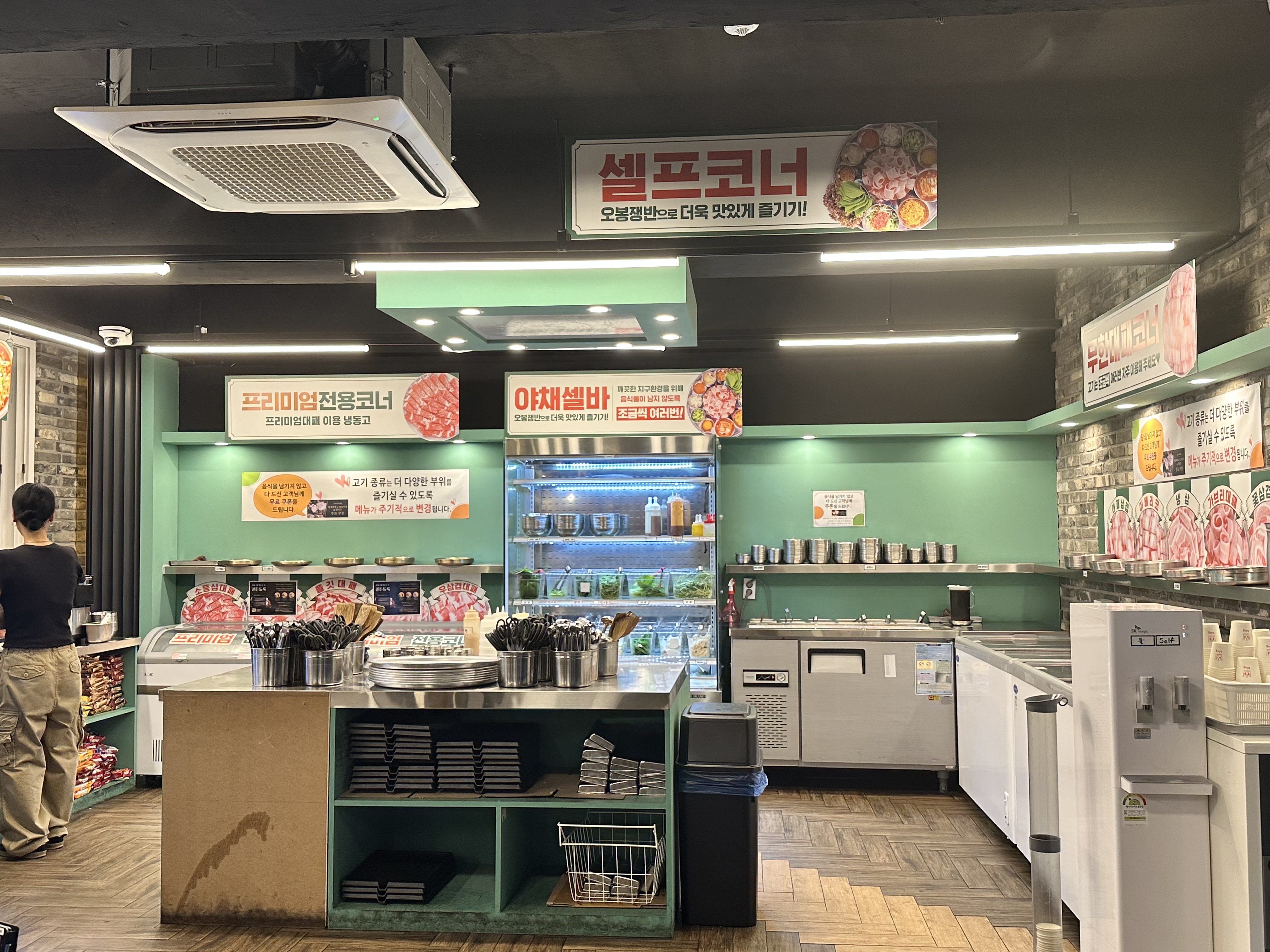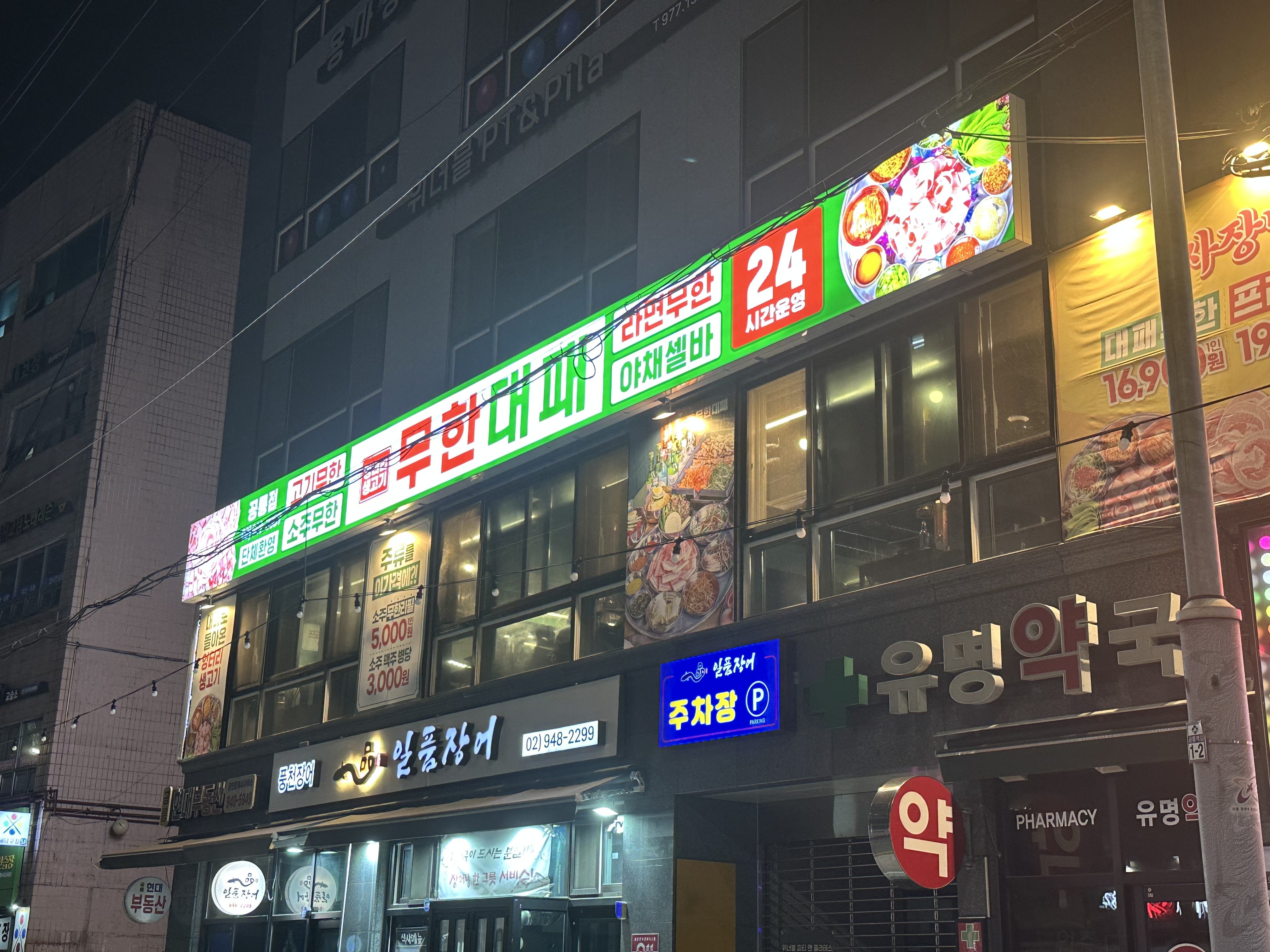 밤에도 사람이 끊이지 않을 정도로 많았고 확실히 무한리필 가게라 가성비와 편리함이 크게 느껴졌어요.