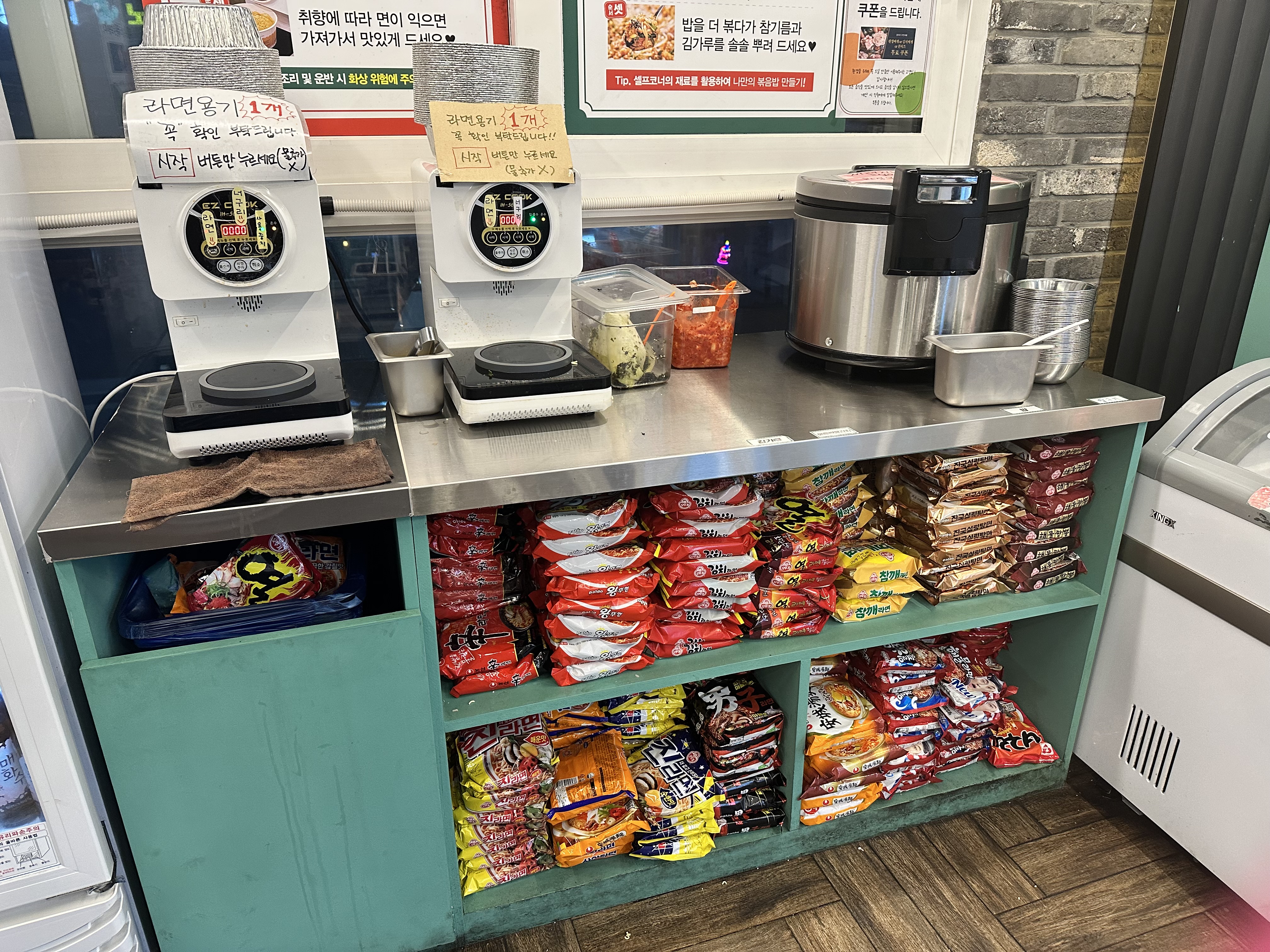 - 샐러드바, 라면, 볶음밥 등 기본 포함