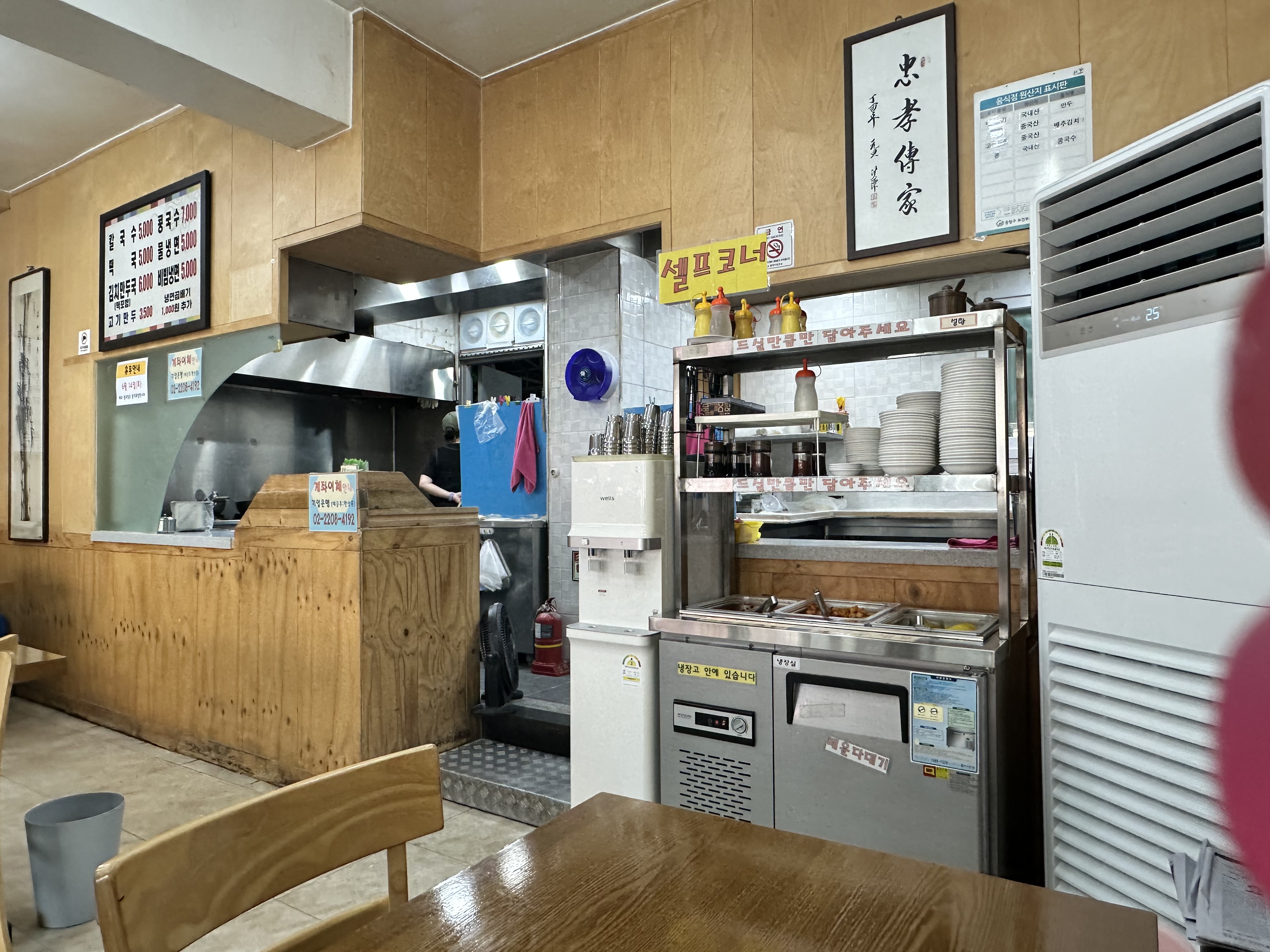 내부는 테이블 간격이 넓고 혼밥 가능 좌석도 있어 회전율이 빠른 편이에요. 점심시간에도 부담 없이 이용할 수 있었고, 셀프 반찬 코너에서 원하는 만큼 반찬을 가져다 먹을 수 있어 좋았어요.