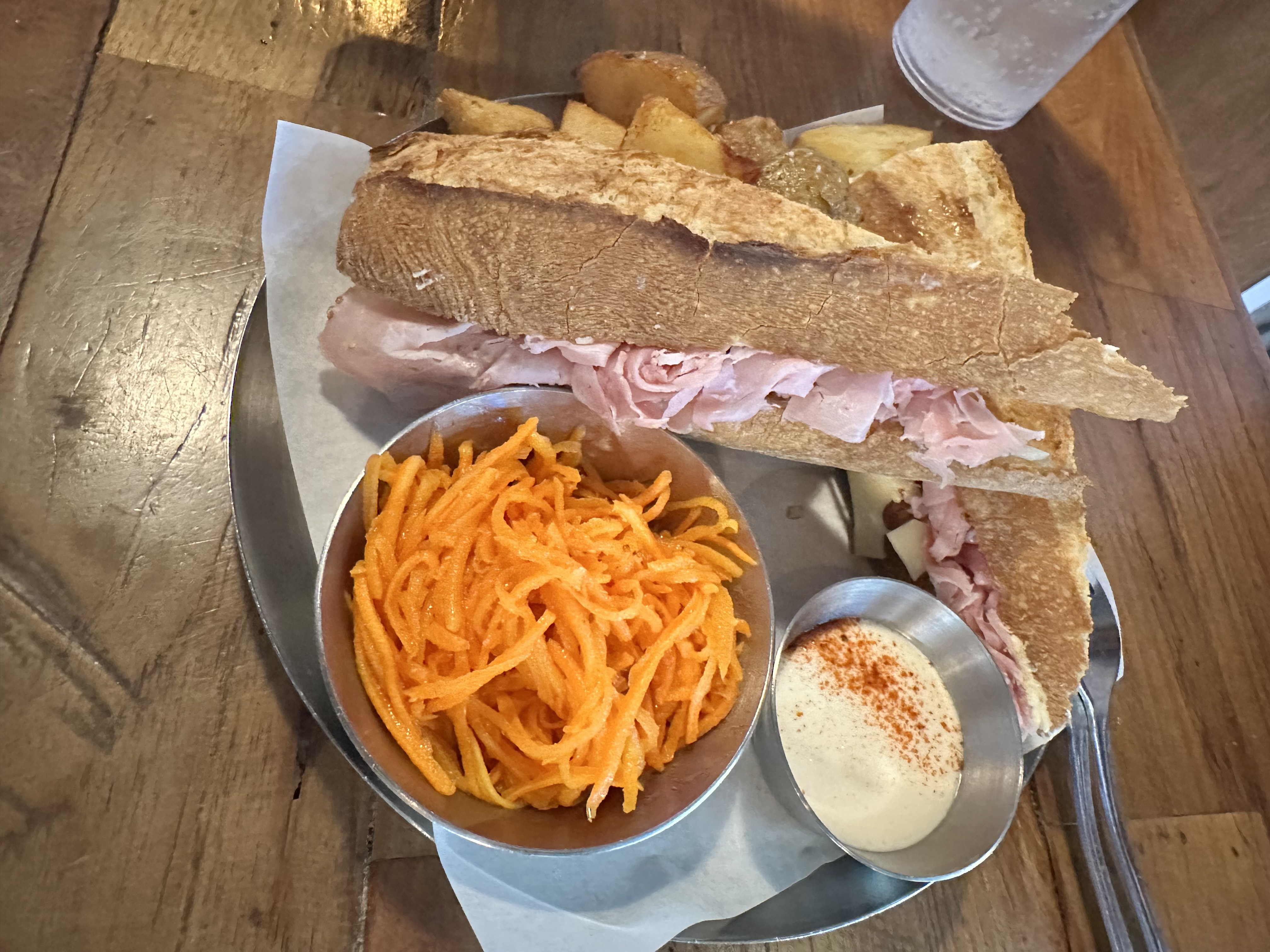 감자튀김은 ‘겉바속포’ 스타일로 완벽했고 당근라페 덕분에 느끼하지않게 먹을 수 있었어요. 한창 당근 라페 만들기가 유명해졌을 때 저는 당근을 별로 좋아하지 않아서 먹어 보고 싶은 마음이 없었는데 실제로 먹어 보니 너무 너무 맛있더라구요. 이렇게 당근이 맛있어도 되나 라고 생각을 했습니다. 바게트도 딱딱해서 잘 안 먹는데 겉에는 바삭 하고 속은 촉촉해서 먹기 힘들지 않았어요. 색다른 샌드위치를 드셔 보고 싶으신 분들이나 잠봉을 좋아하시는 분들은 꼭 한번 방문해 보셔도 좋을 것 같아요!