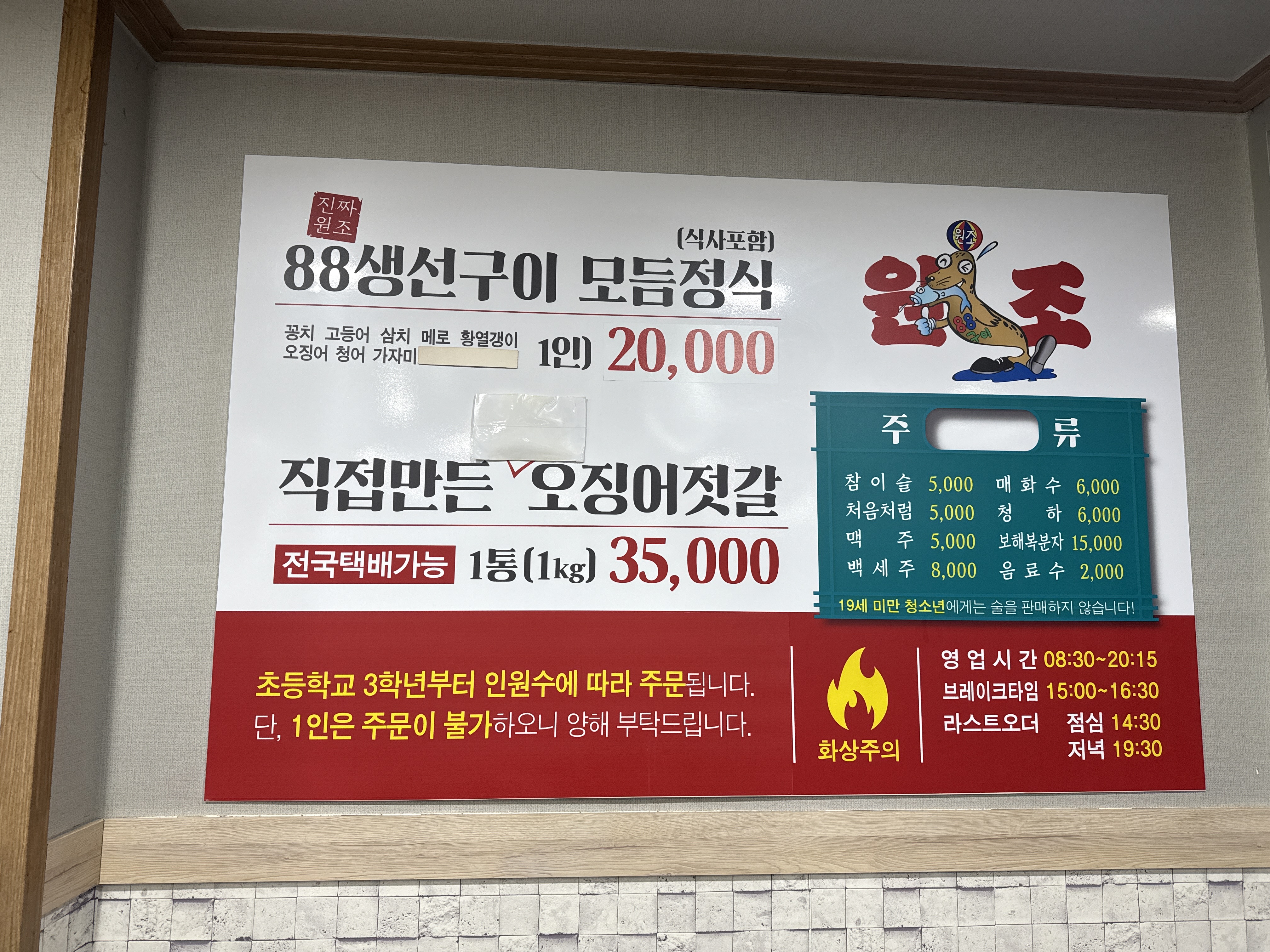- ๋ชจ๋ ์์ ๊ตฌ์ด ์ ์ (1์ธ๋น): 20,000์ (์ด๋ฑ 3ํ๋ ์ด์ 1์ธ 1๋ฉ๋ด ํ์)
